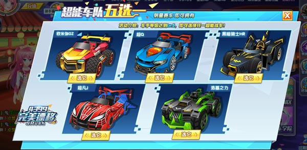 超能车队五选一,很多小车手犹豫不知道选哪个好,其实选哪一辆都一样哦!其他可以通过别的方式获得呢!
