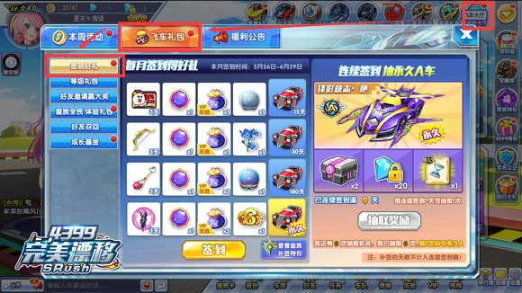 活动奖励每月会有不同哦!但是满勤签到一定会有永久赛车获得!小车手们一定要每天签到哦!
