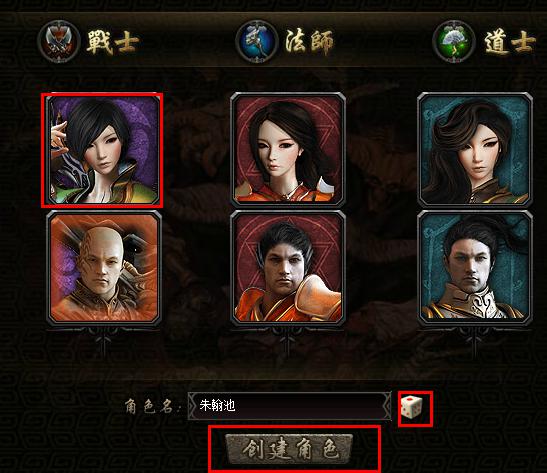 角色创建 1.登陆游戏之后,可以选择主角性别 2.主角名字创建,可以采用骰子自动随机名字,也可以自己手动输入6个汉字或字符 3.点击进入游戏按钮,若所取名字合法,则可以顺利开始游戏。